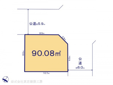 | 現況/引渡し | 更地/相談 | 接道状況 | 接道: 北東 公道 道路幅: 4.08m 接道: 北西 公道 道路幅: 4m |